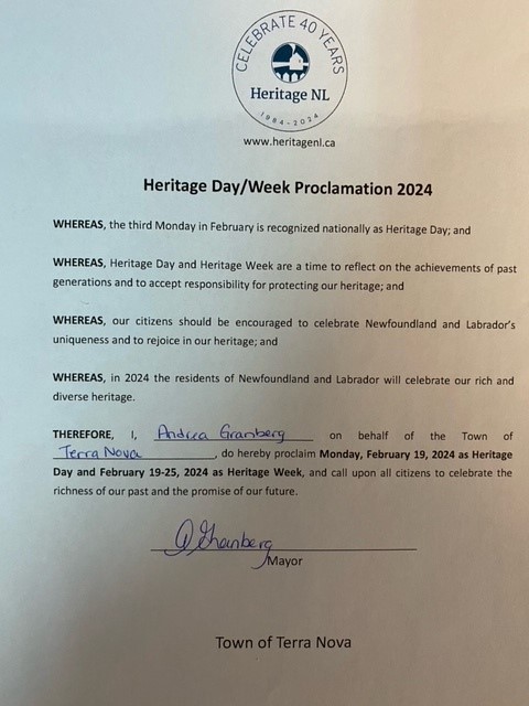 Monday, February 19, 2024 is Heritage Day and February 19-25, 2024 is Heritage Week. The Town of Terra Nova signed the Heritage Day/Week Proclamation 2024 and we wanted to share a few pictures of some of the heritage in the Town of Terra Nova which includes the Eddie Eastman Hall and some old school library books, a old cash register, and old typewriter that is on display at the town office that was donated to the town from one of our long time residents. Drop by the town office on our regular scheduled hours to view the items and sit and enjoy one of the old library school books.